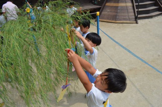 7/7 今年は、令和7年の777の日なんですね。猛暑であっても、相変わらず子ども達は元気一杯です。皆、願いを込めて七夕飾りと短冊を作りきれいに飾りつけしました。