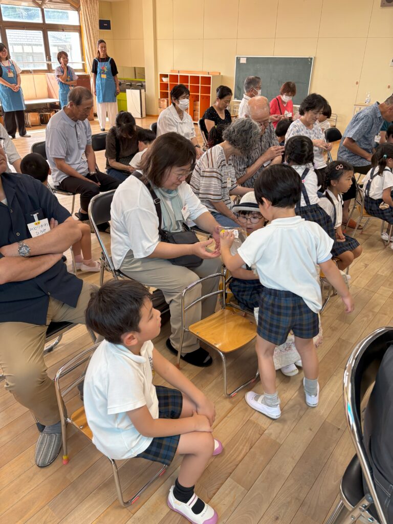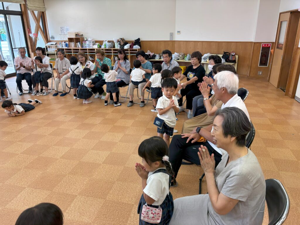 敬老の日に合わせて、幼稚園でも祖父母の皆様をご招待して「祖父母の会」を行いました。普段から身近にいるご祖父母様から、飛行機や新幹線で行かなければ会えないご祖父母様まで沢山の方にご参加頂きました。一緒にいっぱい遊ぶことが出来て、楽しいひと時を過ごしました。